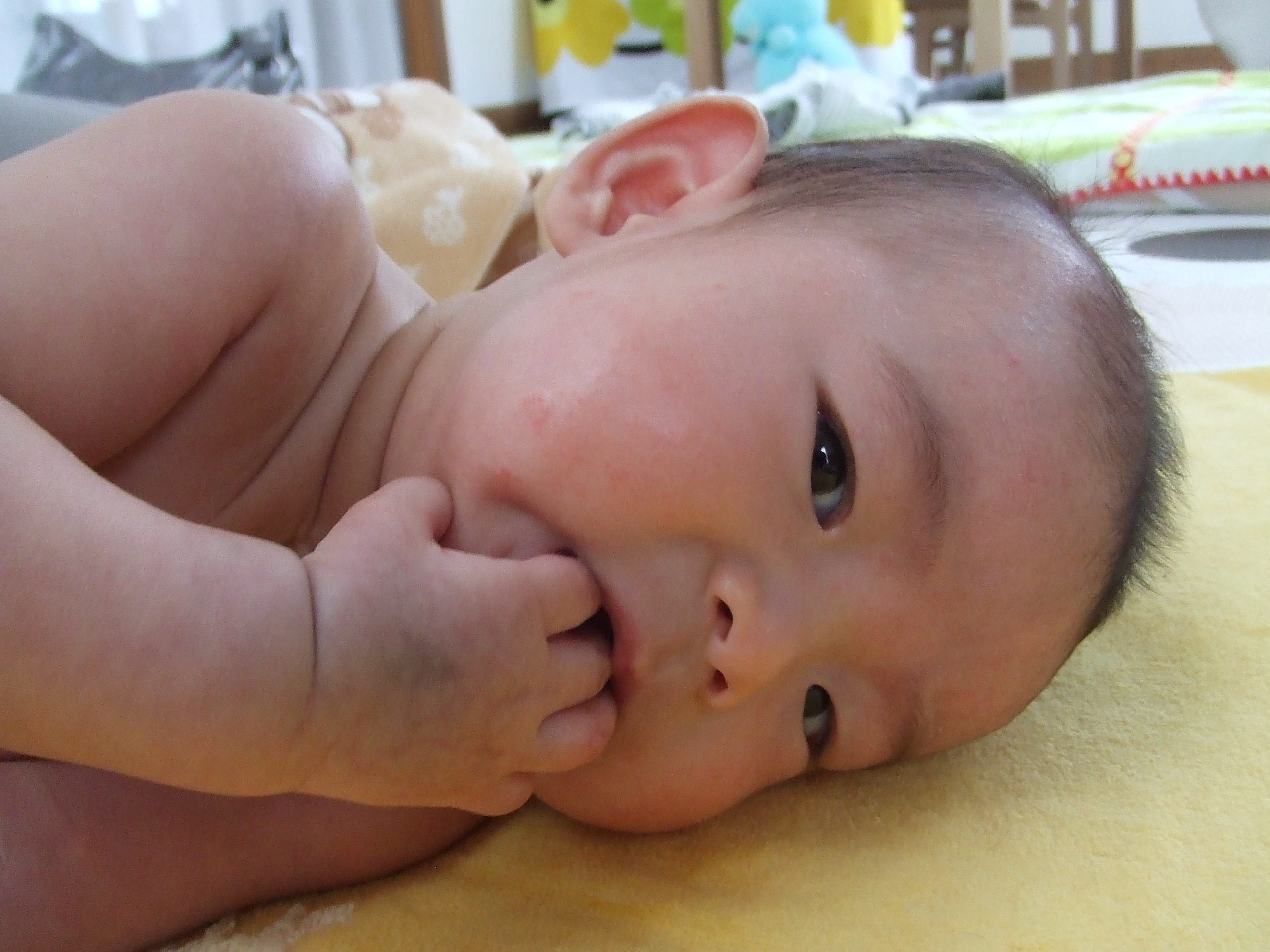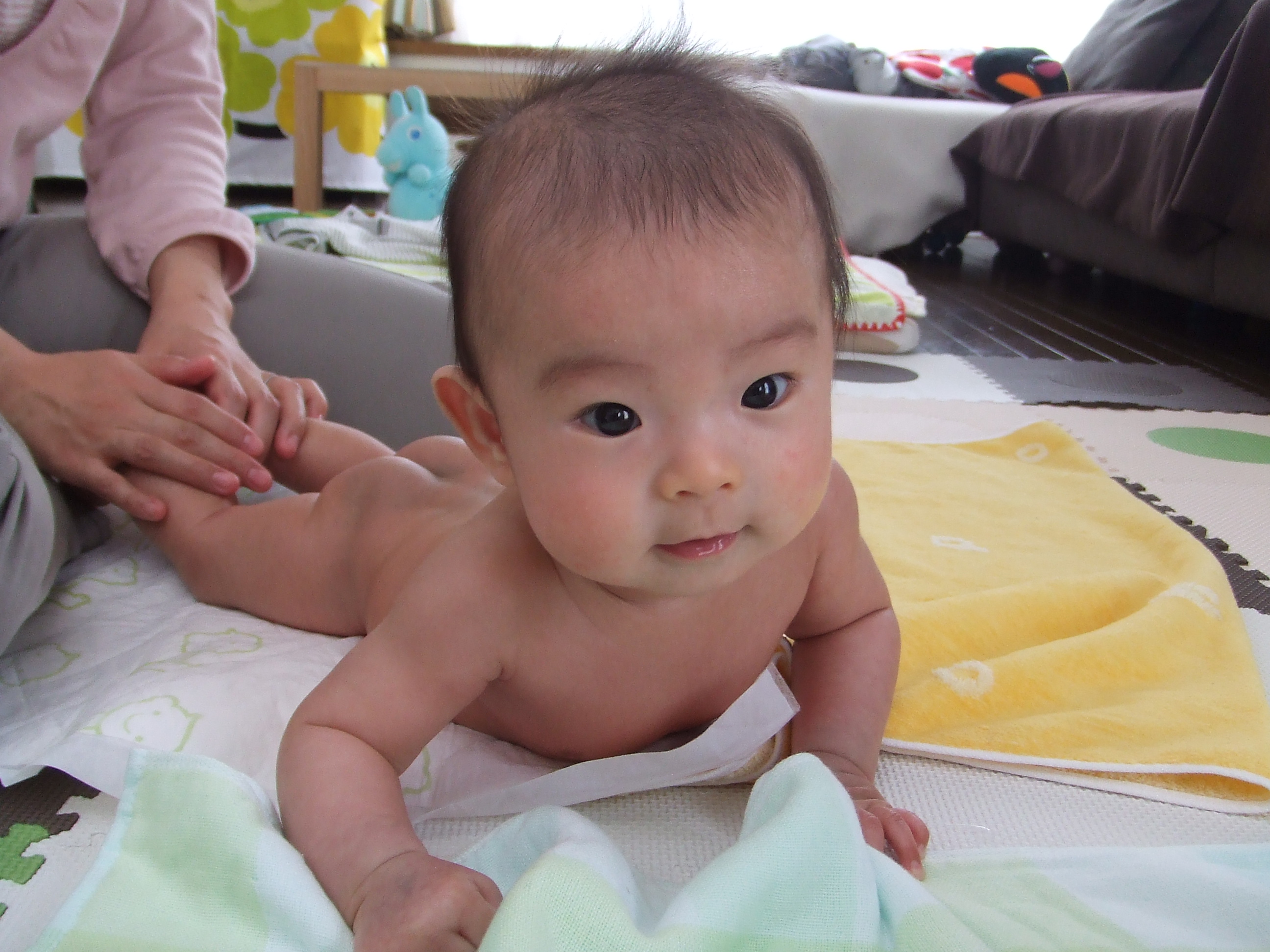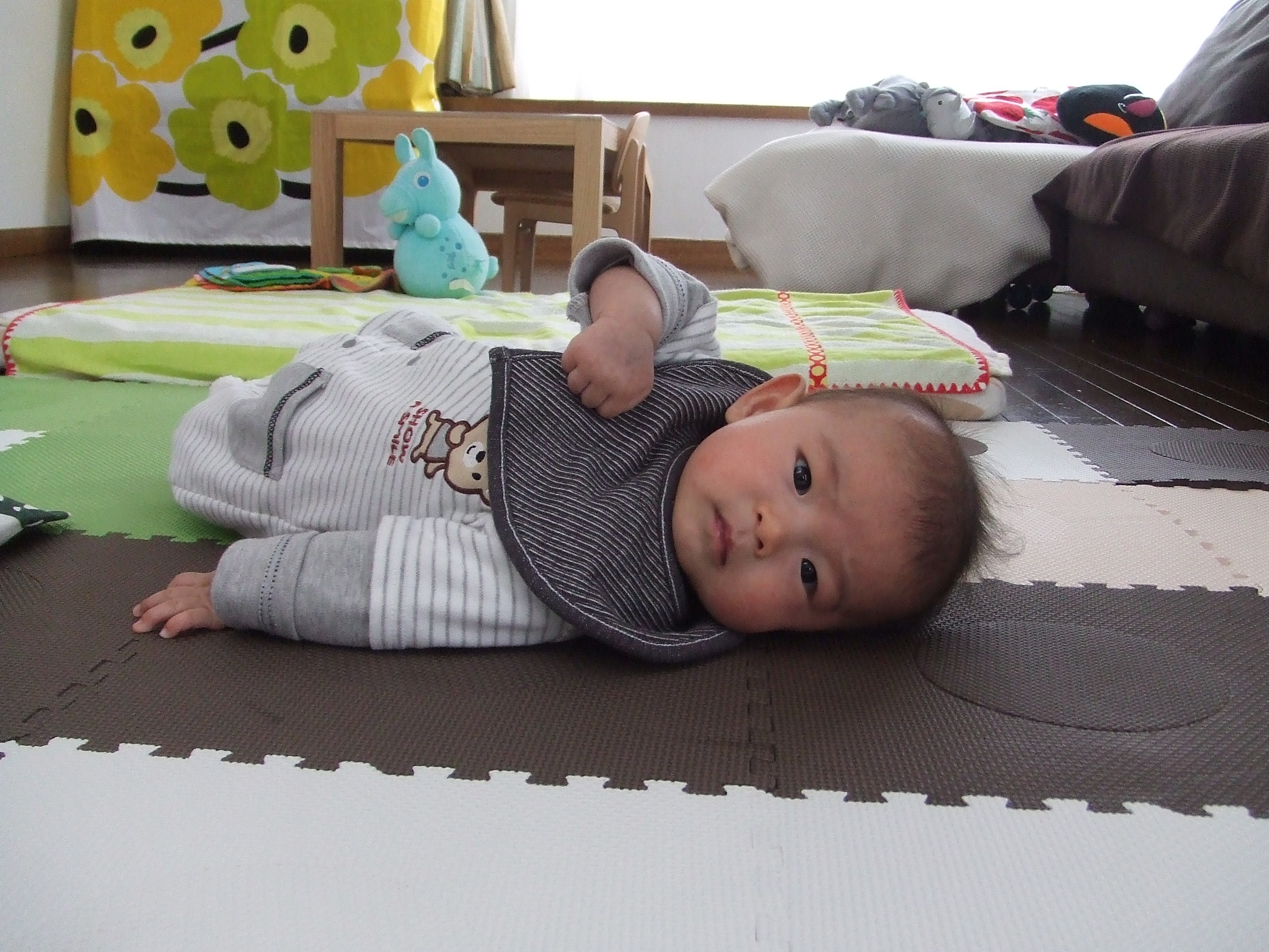 寝返りも出来るようになりました!!