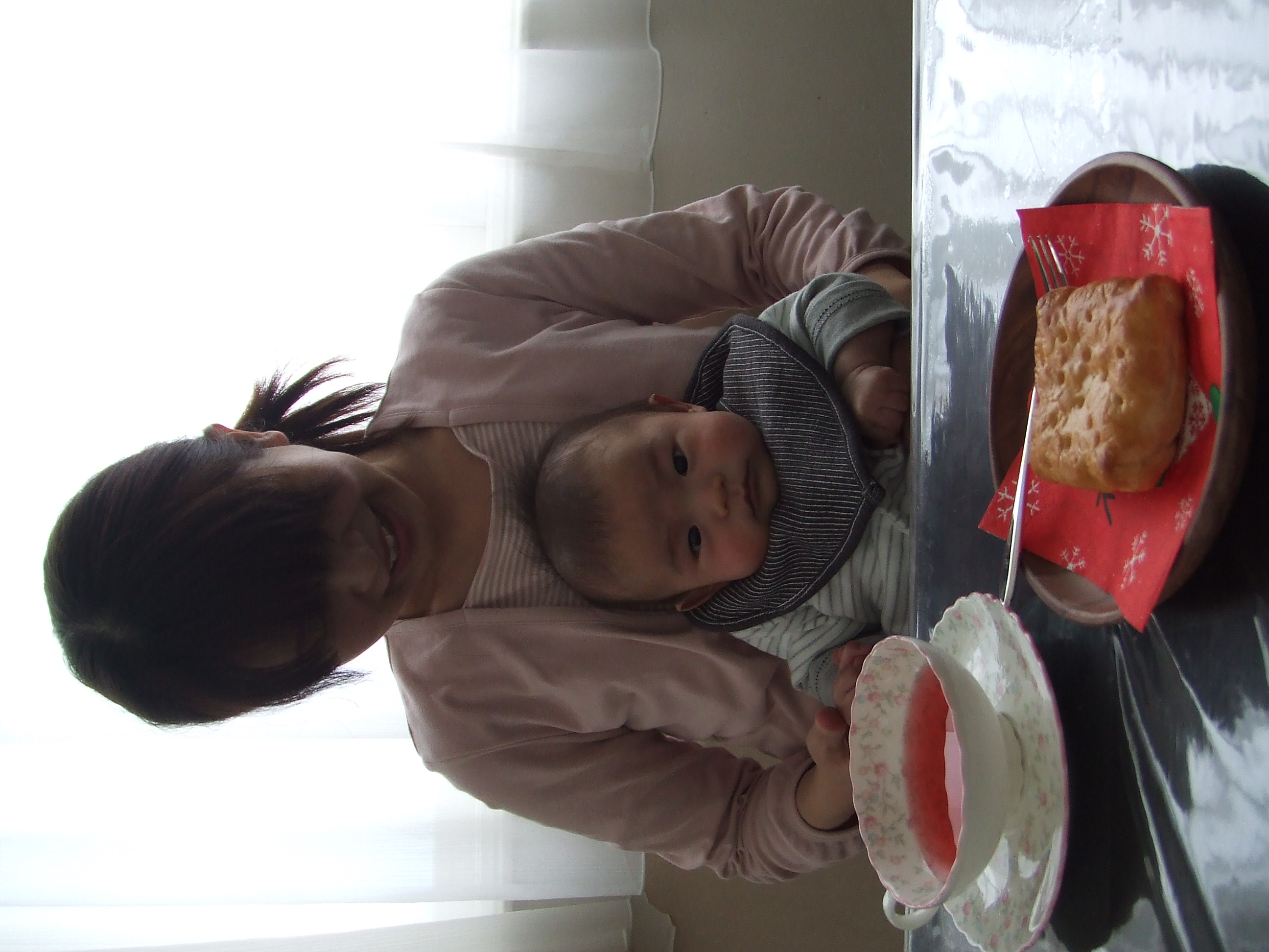 ママがお茶を飲んでいるのをじっーと見つめていました!
