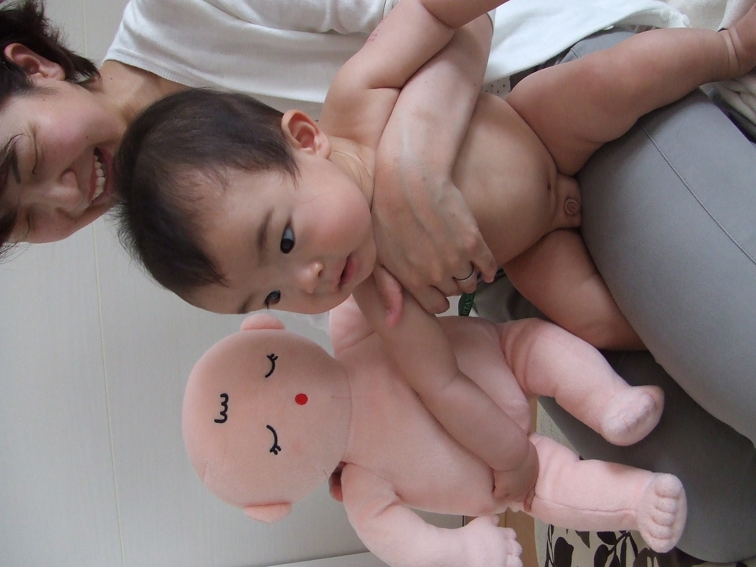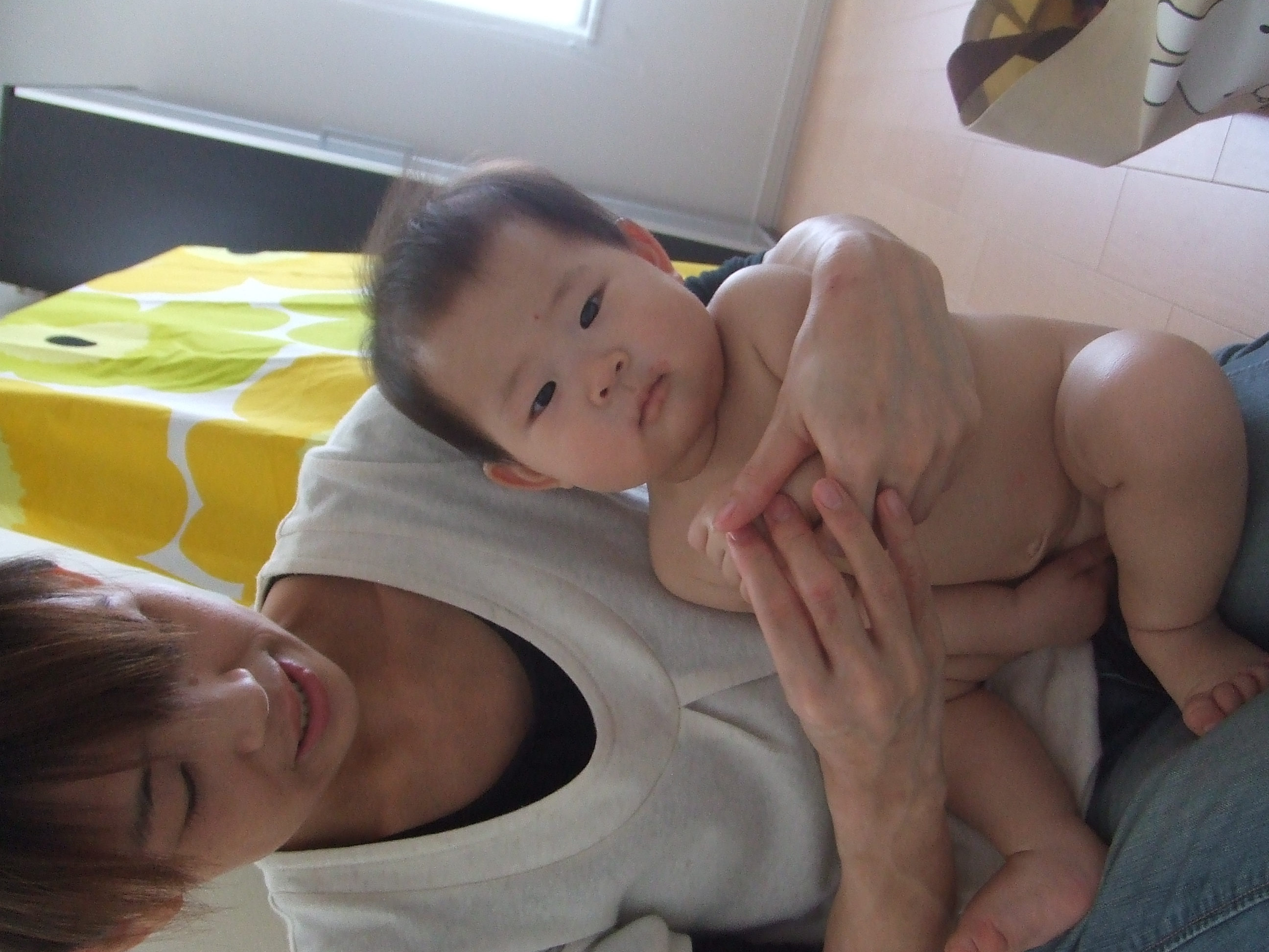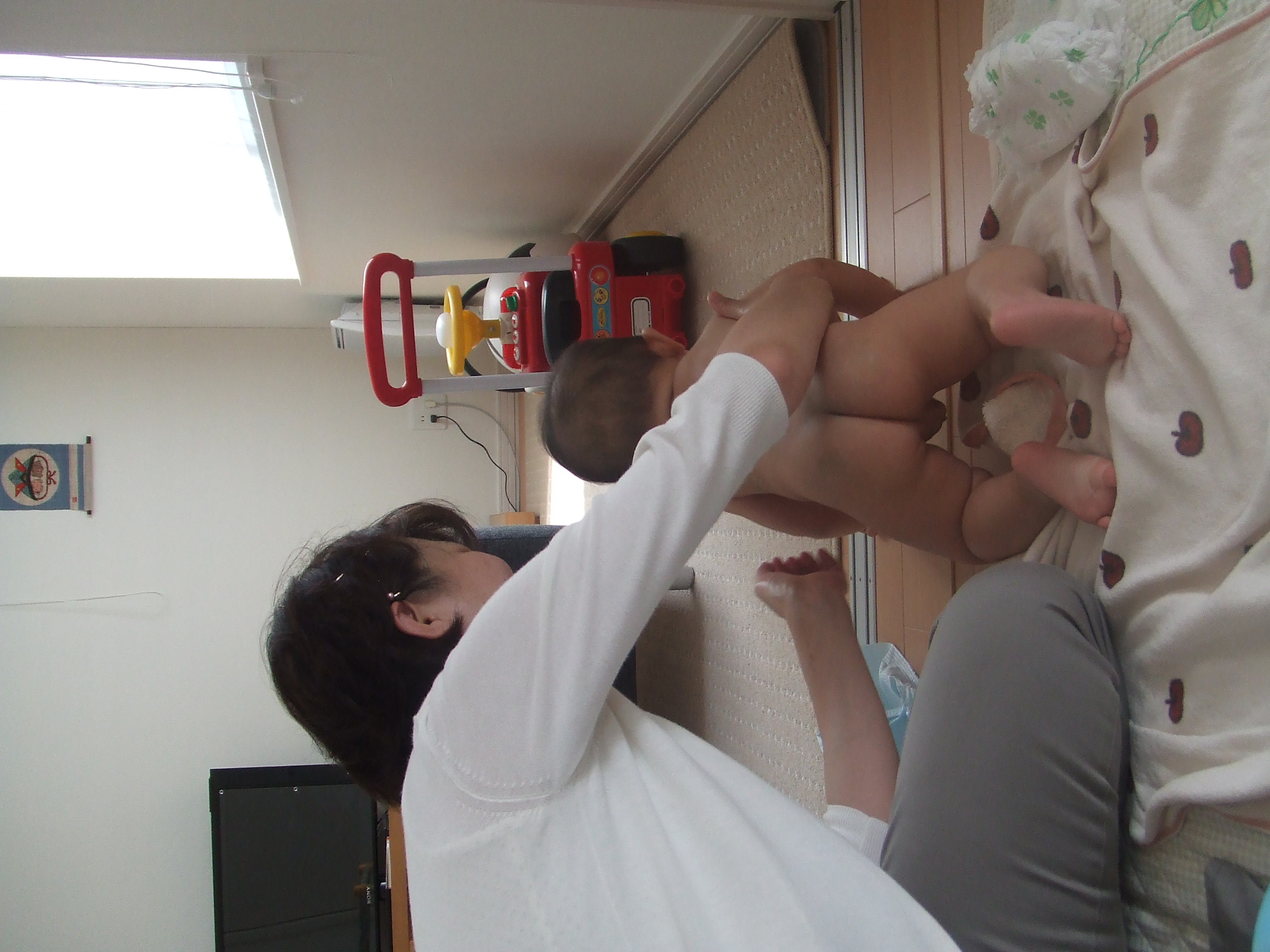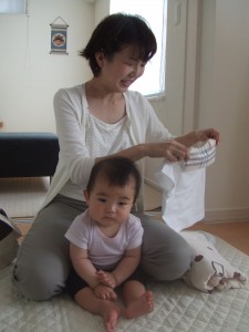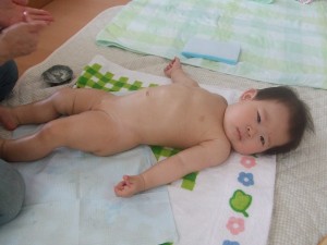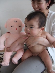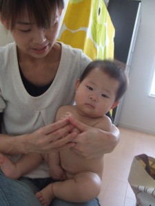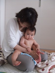 ママの抱っこで「おててのマッサージ」☆
