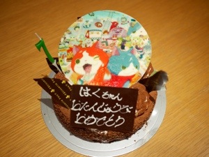 ケーキは最新テクノロジーでジバニャンを焼き付けたチョコプレートをオーダー!