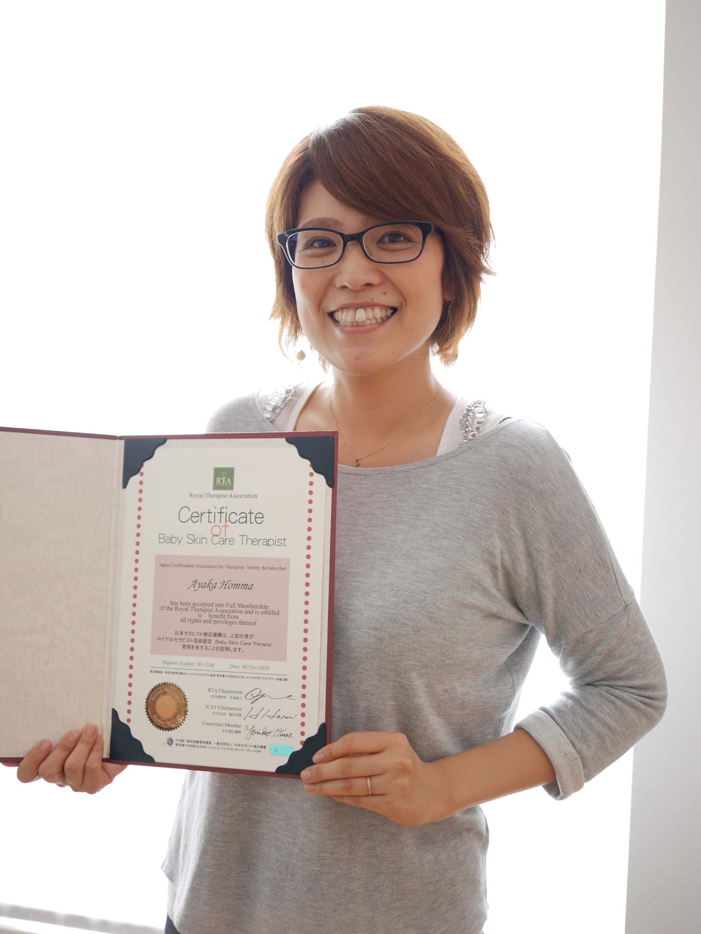 本日は、10月試験でベビースキンケアプロ講座に合格されたH様へ頑張った証、ディプロマを授与いたしました!