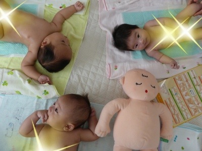 今日は3ヶ月の男の子と2ヶ月の女の子とご一緒レッスン!